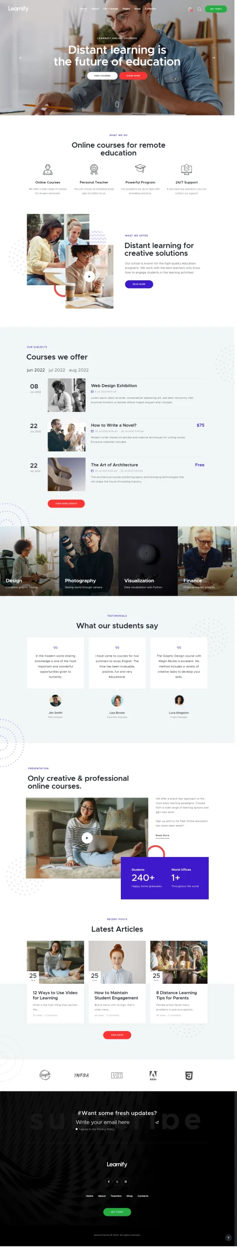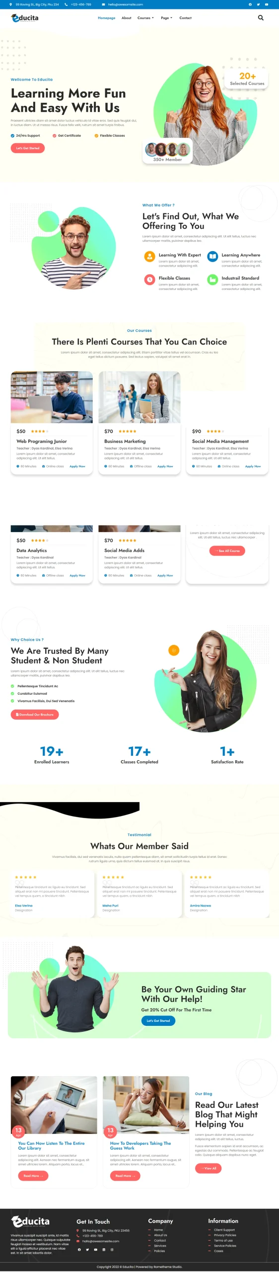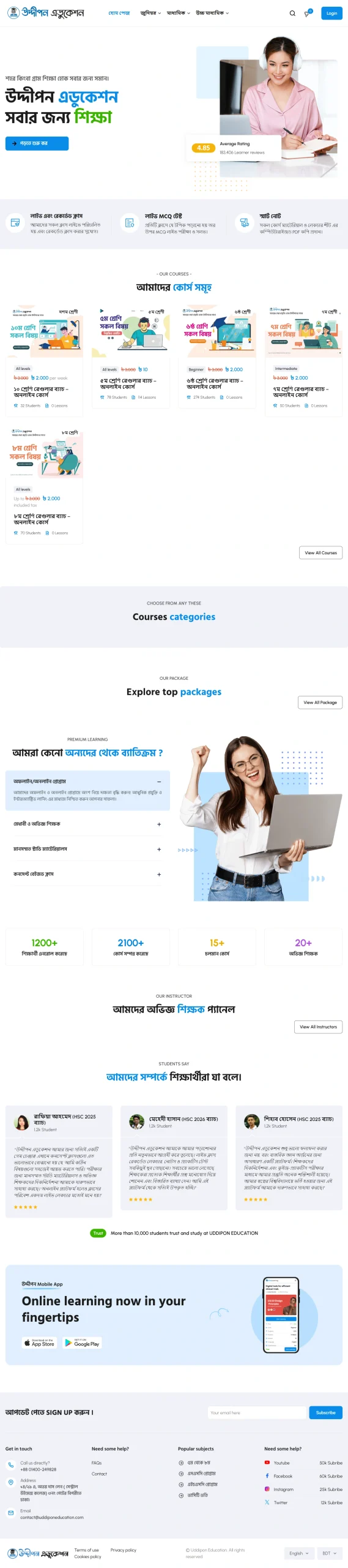 - Up to 6 pages (Home, About, Courses, Admissions, Gallery, Contact)