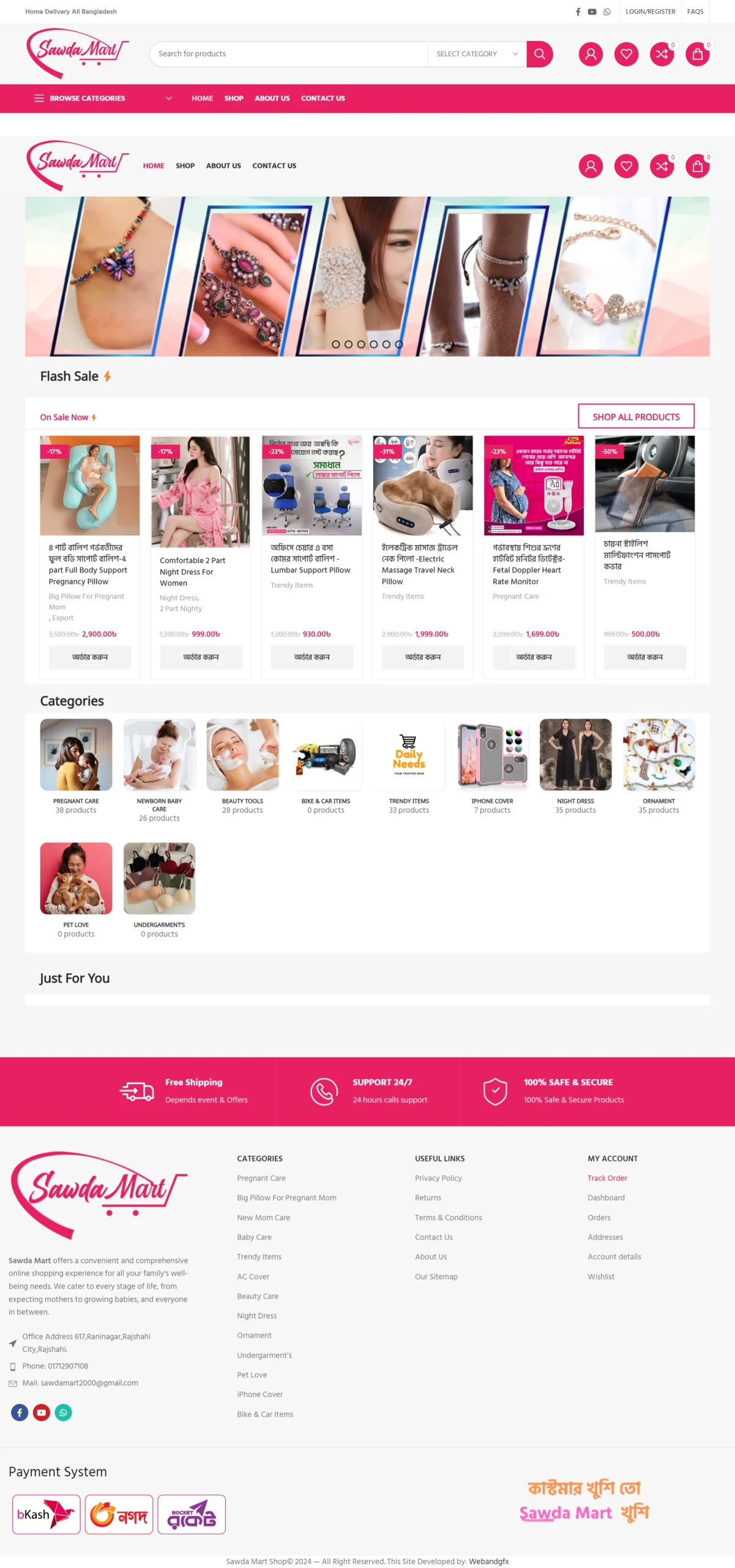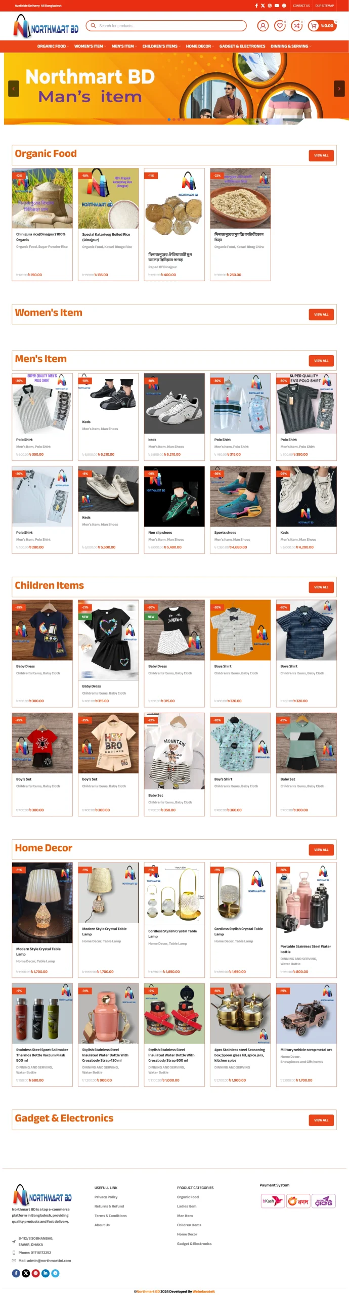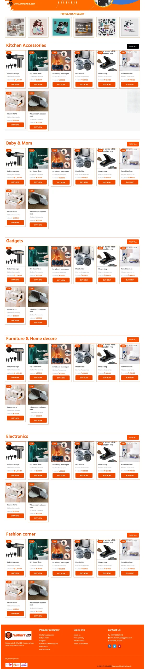 - Homepage with featured products, banners, categories