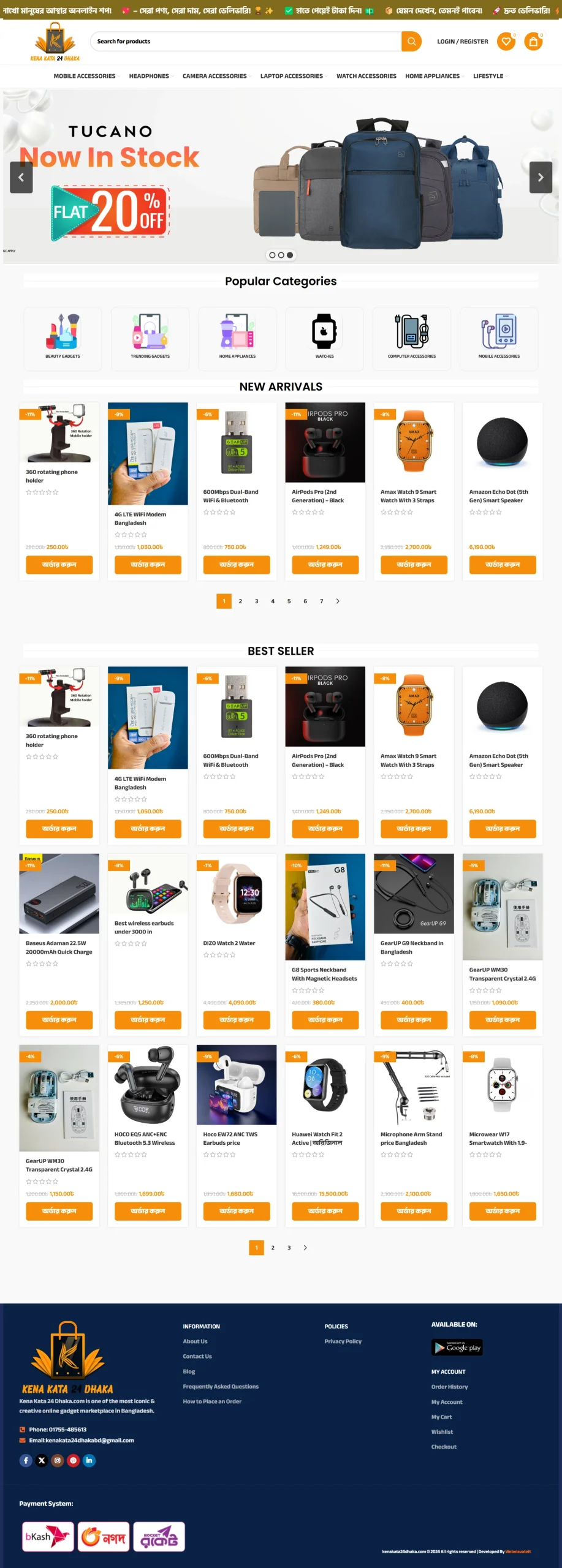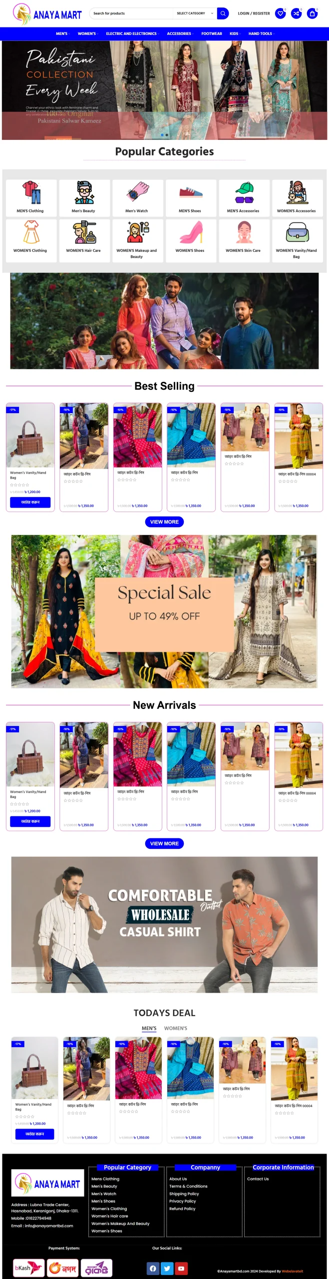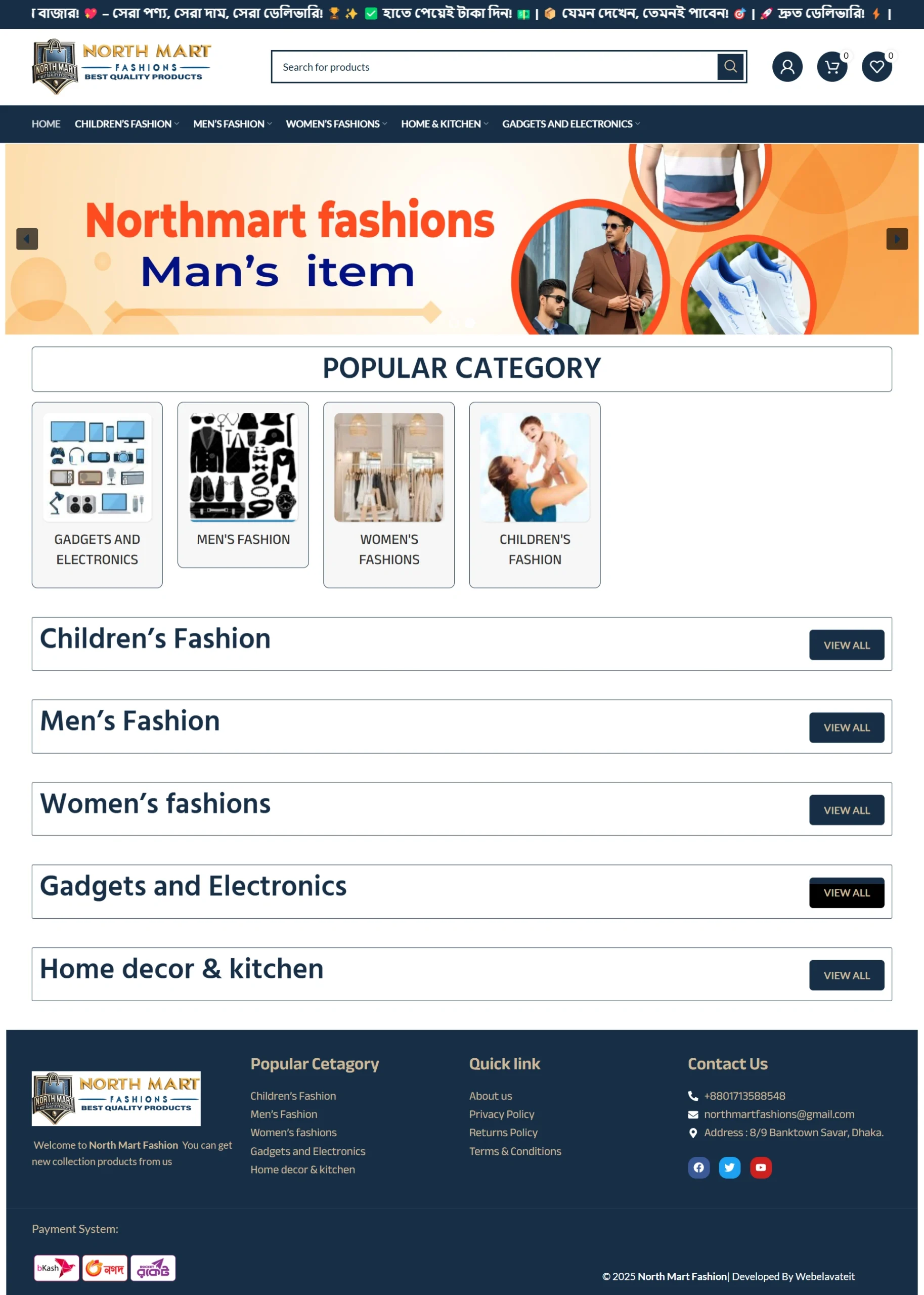 - Homepage with featured products, banners, categories