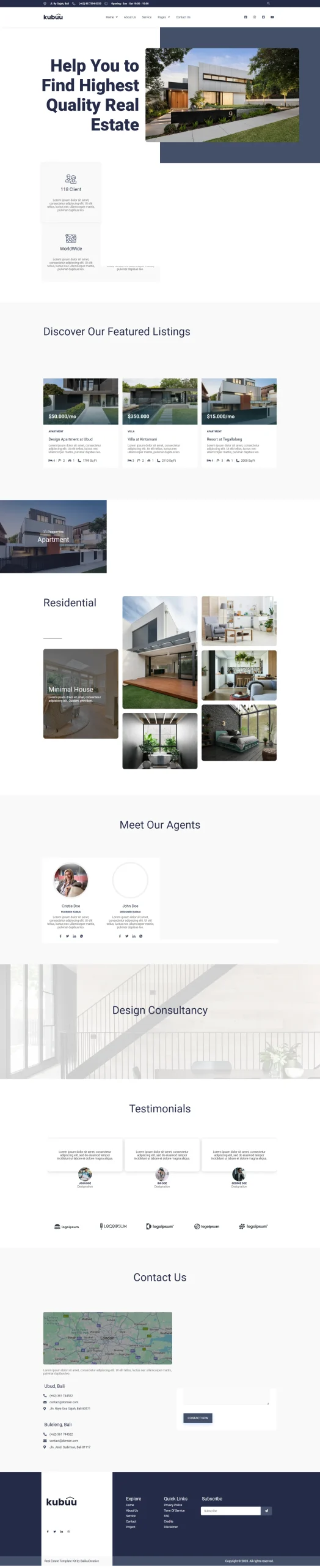 - Testimonials or client logos section